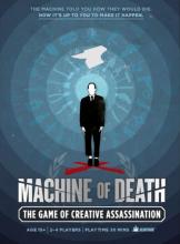 Machine of Death: The Game of Creative Assassination is a storytelling game set in a world in which a machine can predict how a person will die with 100% accuracy with only a small blood sample. However, the machine delights in being vague and twisted. A card reading "Old Age" could mean you die in your sleep at age 120, or it could mean you're run over tomorrow by an elderly driver who forgot to take his pills today. Players of the game take the role of assassins, who must use the various tools at their disposal -- from storytelling to a slew of items available from specialty Black Market shops -- to create a situation in which a target is killed in a way in line with their Death Prediction. The Machine of Death Game uses this basic idea, of assassins working in a world were cause of death is known to create various game modes.