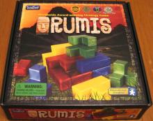 In the game Rumis, the players construct an Inca building with their stones. All players receive three-dimensional pieces made of wood, which they will try to position adjacent to their already placed pieces of their own color. All of their own pieces are of different shapes, which is a challenge to the three-dimensional imagination.