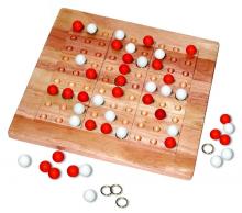 Tic Tac Ku is played on a game board which is a 3 x 3 grid of Tic-Tac-Toe boards. In the simple game, the object is to get a Tic-Tac-Toe on any of the 9 boards. In the advanced game, the object is to get 5 Tic-Tac-Toes.